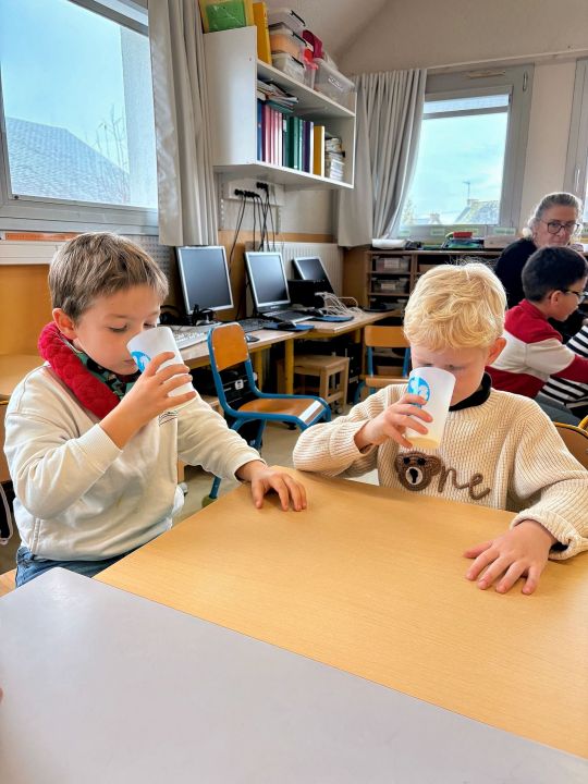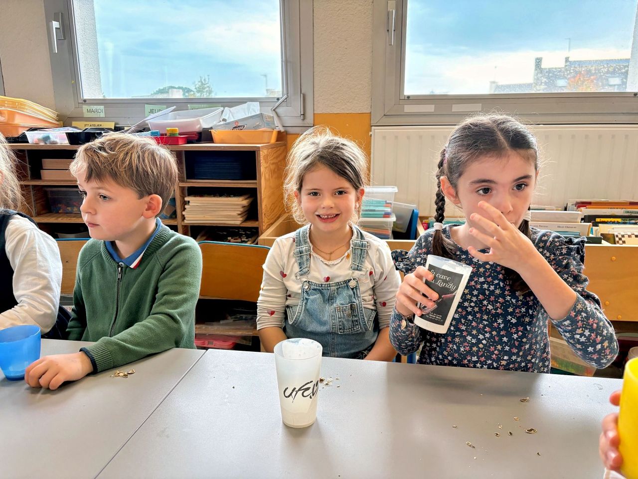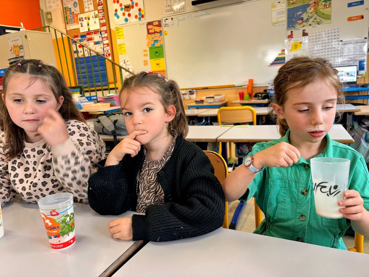 Certains ont trouvé que « ça pique un peu », d’autres que « ça a le goût du yaourt de mamie ». Tout le monde s’est régalé, et quelques-uns avaient même de jolies moustaches de lait !