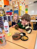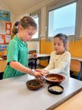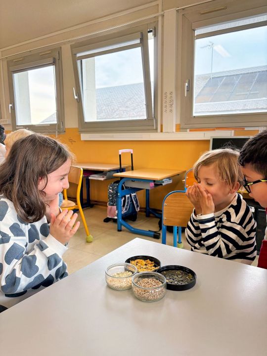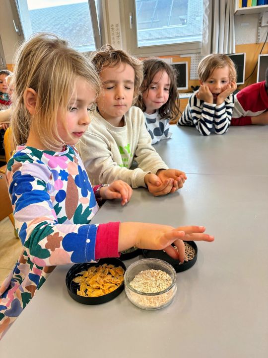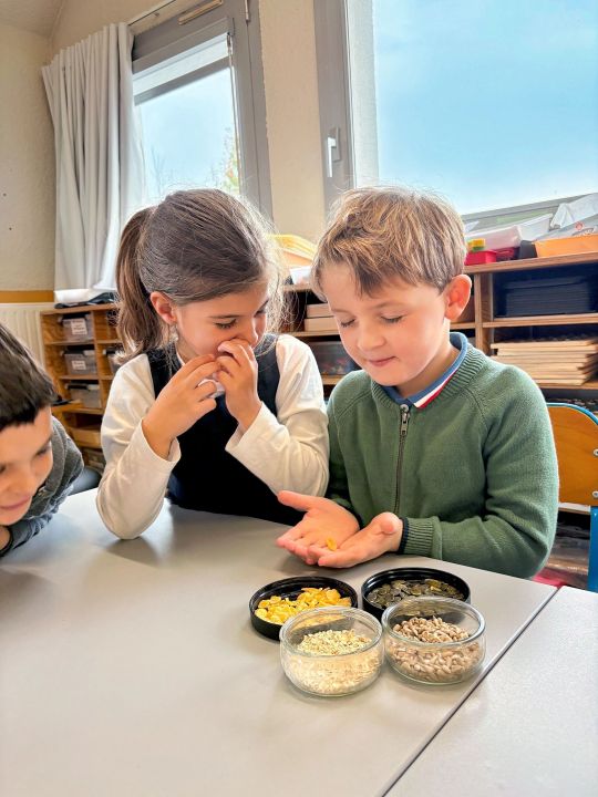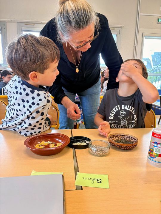 Cette semaine, les élèves de Grande Section et de CP ont participé à un atelier diététique animé par Isabelle, notre diététicienne. Un moment gourmand et curieux placé sous le signe de la découverte des goûts, des textures et des familles d’aliments !