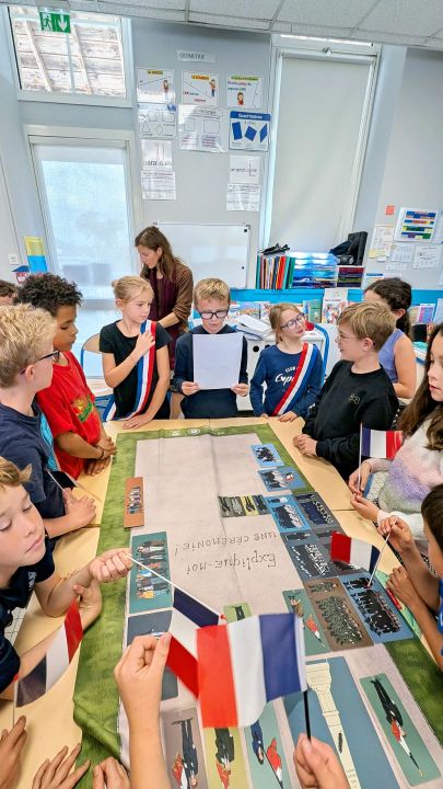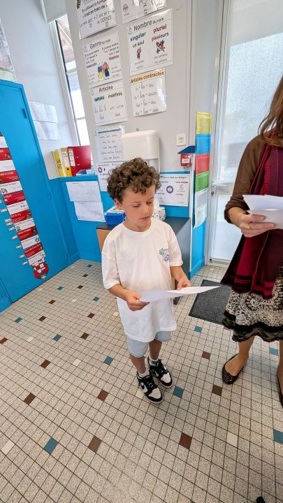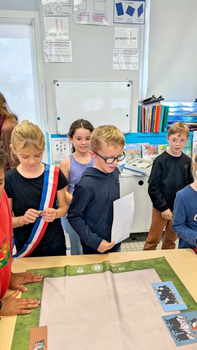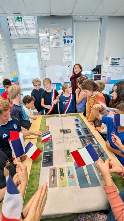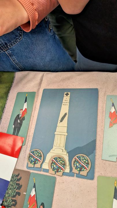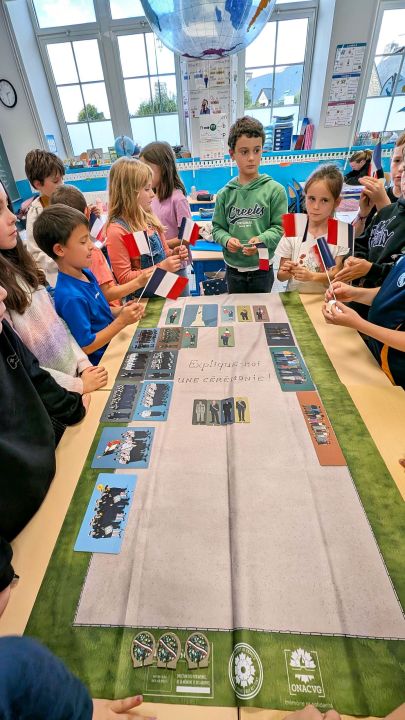 Ensuite elle nous a demandé quelles personnes principales assistent aux commémorations et où sont-elles placées. Après elle nous a donné des rôles, on devait lire des textes pour certains, il y avait le maire et les portes drapeaux, ceux qui déposaient des fleurs et après on a tous chanté la