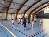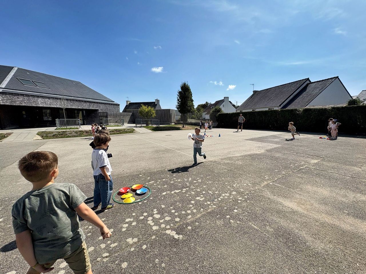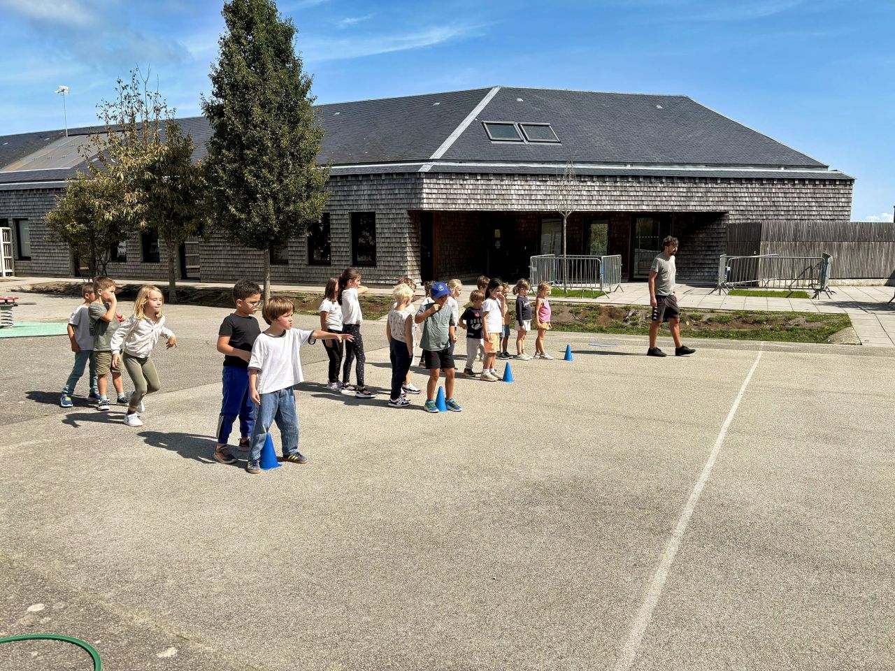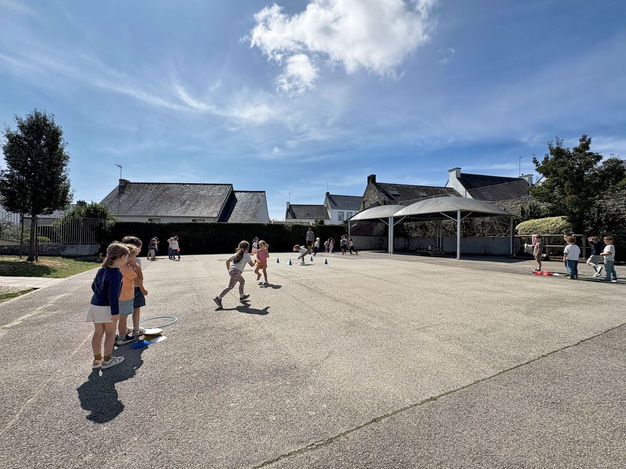 En ce moment, on fait des petits jeux de course, parce qu’on va bientôt participer au Cross au stade du Loch à Auray. Pour être prêts, on doit apprendre à courir longtemps sans s’arrêter.