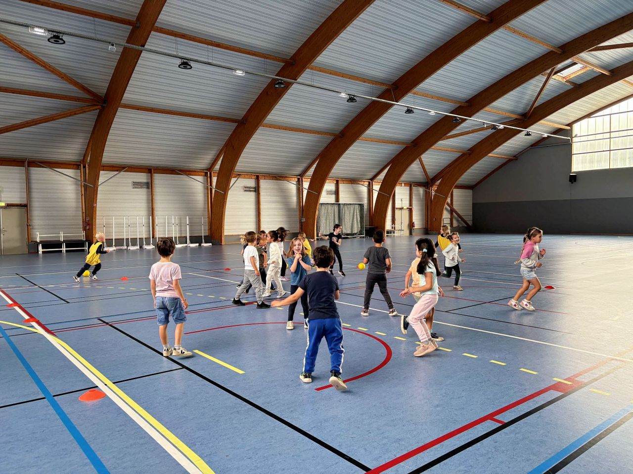 Tous les vendredis après-midi, notre classe part faire du sport à l’Espace des Chênes avec Franck. On y va à pied, c’est notre échauffement.
