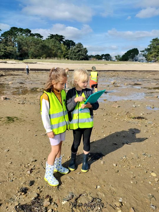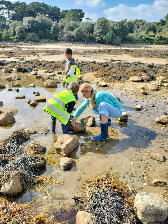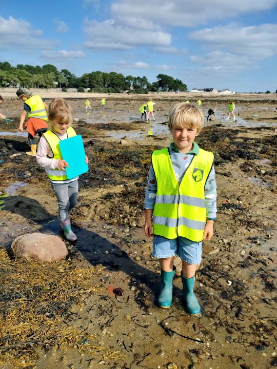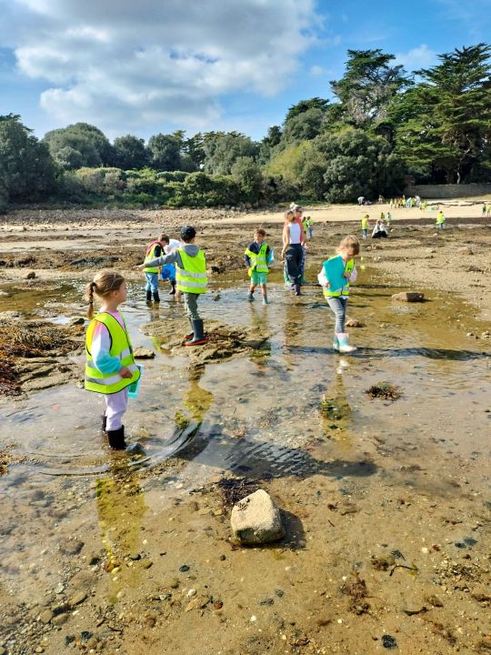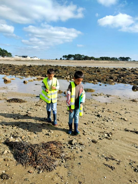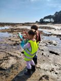 Les élèves de la classe se sont rendus, en bus, sur la plage de Men Er Bellec à St Philibert pour participer à une animation proposée par Sow My Dream, dans le cadre de la Fête de la Science. Tout au long de cette intervention, les élèves ont exploré l'estran et ont découvert ses particularités, sa faune, sa flore. Ils ont pu observer des gobies, des anémones, des oursins, des crabes, des crevettes, des étoiles de mer, des bigorneaux, tout en respectant la vie des animaux. Puis avec l'aide de l'animatrice, ils ont tenté de répondre à une question : comment les êtres vivants de l'estran s'adaptent-ils aux conditions de vie si particulières de ce milieu ? Quelles sont les adaptations développées par les êtres vivants pour échapper aux prédateurs? Ils se cachent, se camouflent en prenant la couleur de l'environnement. Quand la marée est basse, l'anémone se referme pour garder l'eau tout comme les moules. Les petits poissons peuvent se déplacer vers les petites mares. Quand il y a des vagues ou du courant, les algues s'accrochent comme les huîtres. Les élèves sont heureux de découvrir les " super pouvoirs" des êtres vivants de l'estran. Une après-midi riche en apprentissage très appréciée des élèves. Un grand merci aux accompagnateurs et à l'équipe de Sow My Dream :)