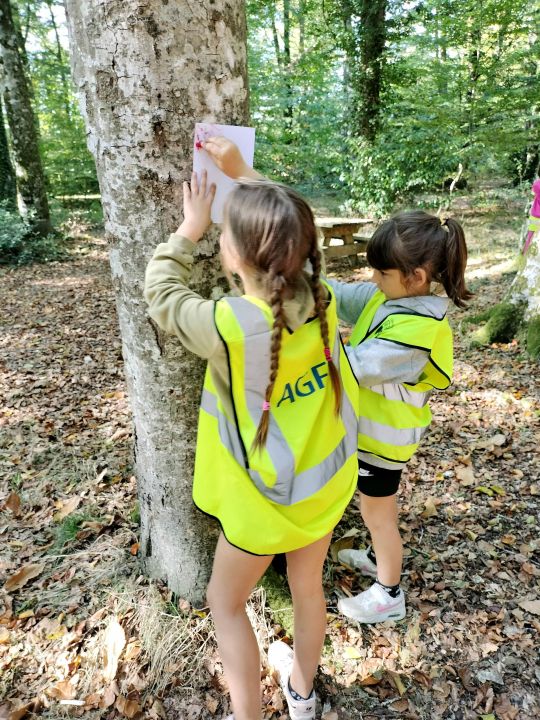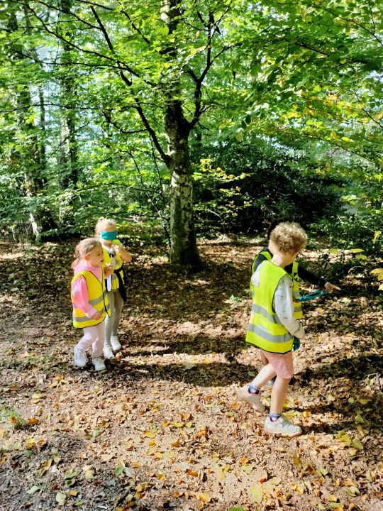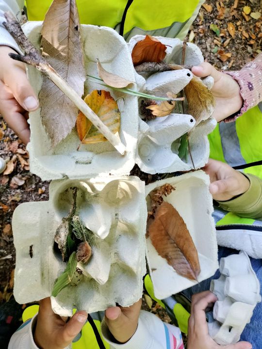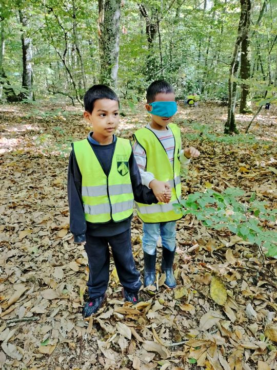Dans le cadre de notre projet "Découverte de la forêt", les élèves de la classe se sont rendus à pied dans le bois de Kerzuc. Ils ont participé à quatre ateliers : découverte sensorielle de la forêt avec les yeux bandés, collecte selon un thème (couleurs, formes, textures et plantes), collecte à l'aide d'une affiche et réalisation d'empreintes d'écorce d'arbres. De retour en classe, une synthèse a été réalisée avec les élèves pour définir ce qu'est une forêt et la richesse de la biodiversité au sein d'un bois. Les éléments collectés seront utilisés pour approfondir les connaissances sur le thème de la forêt. Un grand merci aux parents accompagnateurs et à Martine.
