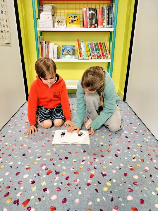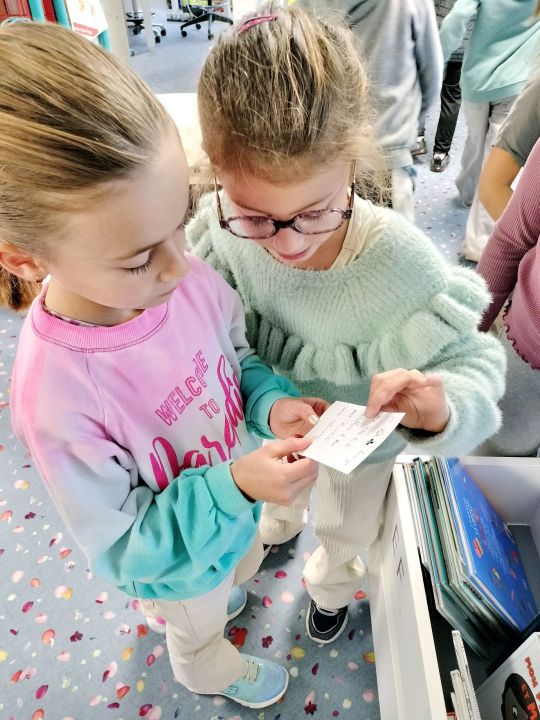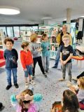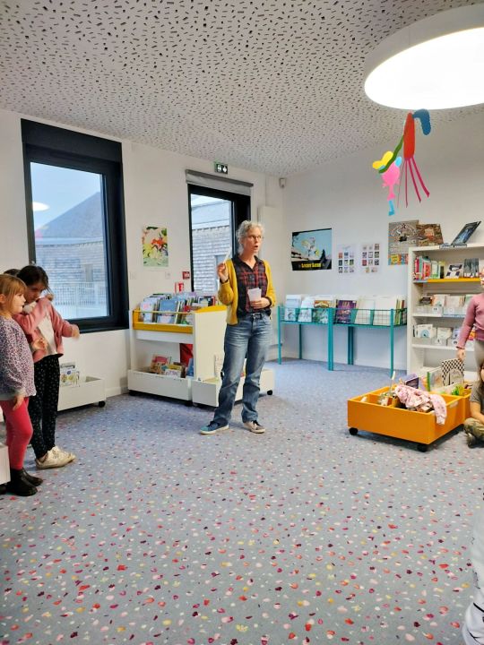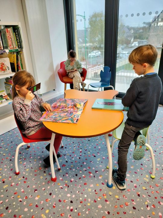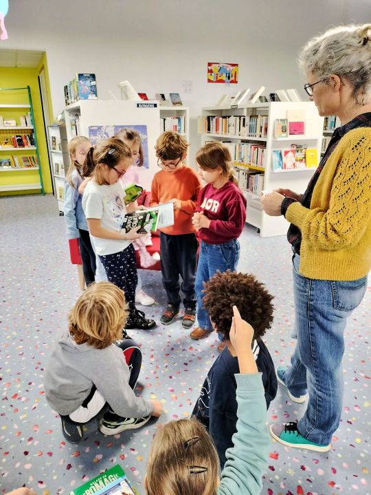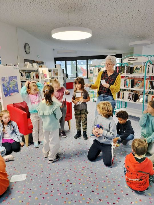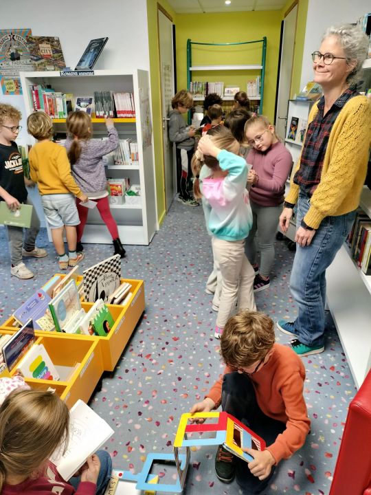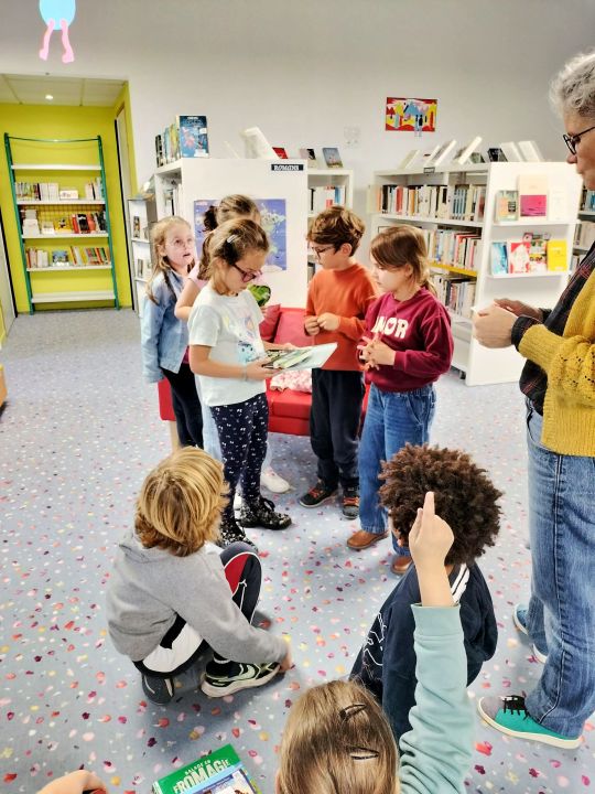 Aujourd'hui, Marie a proposé aux élèves de la classe un jeu pour mieux connaître la médiathèque et savoir ranger les livres correctement. Pour trouver l'emplacement d'un livre, on utilise la côte ou "adresse" propre à chaque ouvrage. Elle est collée sur la couverture ou sur la tranche. La côte fournit un indice sur le type de livre: JR pour Roman Jeunesse, par exemple. Le jeu par équipe a beaucoup motivé les élèves. La séance s'est poursuivie par un temps de lecture individuelle au calme. Merci Marie.